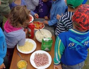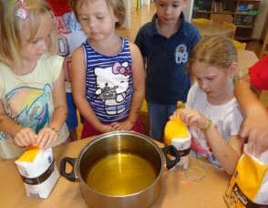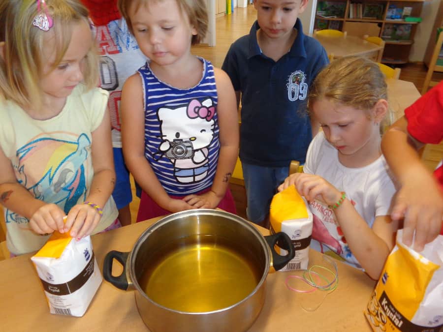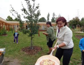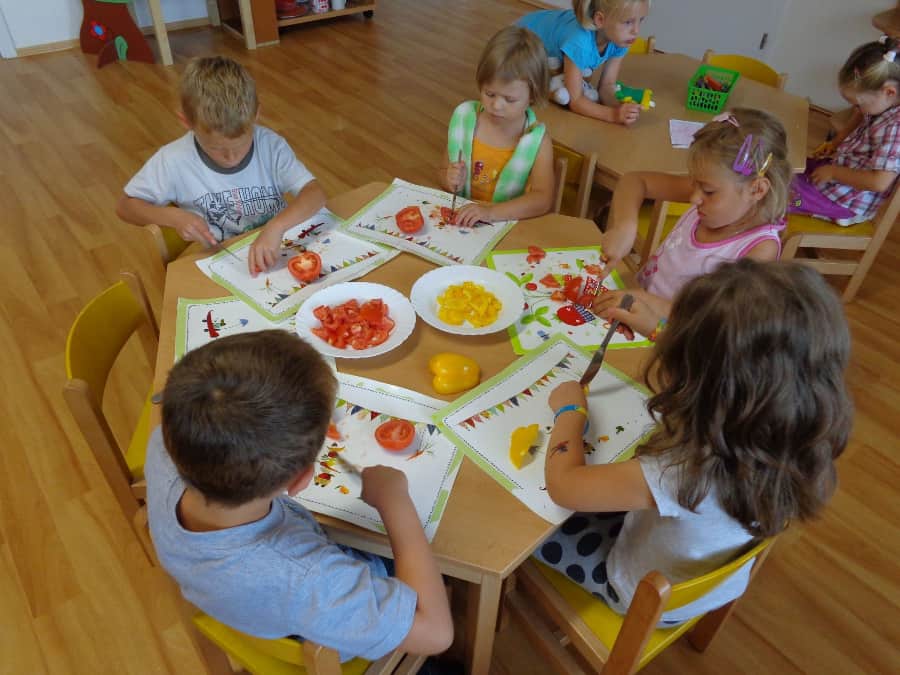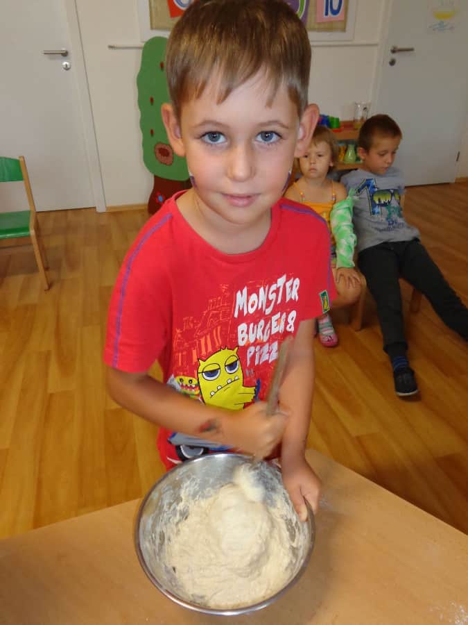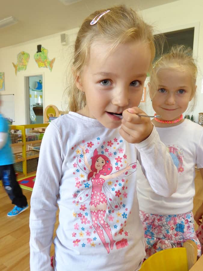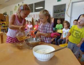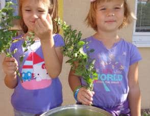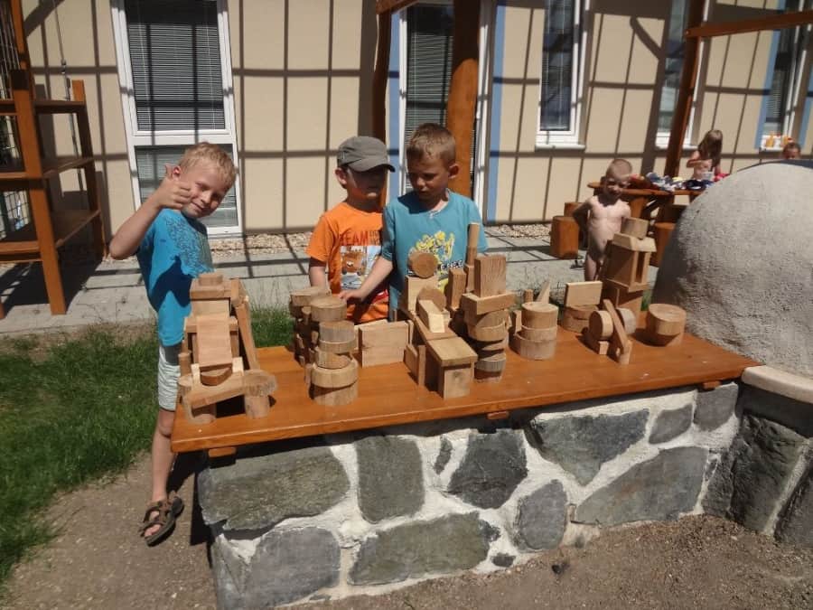 V loňském školním roce jsme měli otevřeno i o prázdninách v srpnu…děti si prázdniny užívaly i přes to, že chodily do školky. Co nejvíce času jsme trávili venku. Když nebylo hezké počasí, děti zkoušely péci v naší nové peci pizzu, na které si všichni moc pochutnali. Při pěkném počasí se děti koupaly, ale také sbíraly bylinky, ze kterých společně vařily bylinkový meduňkovo-mátový sirup …