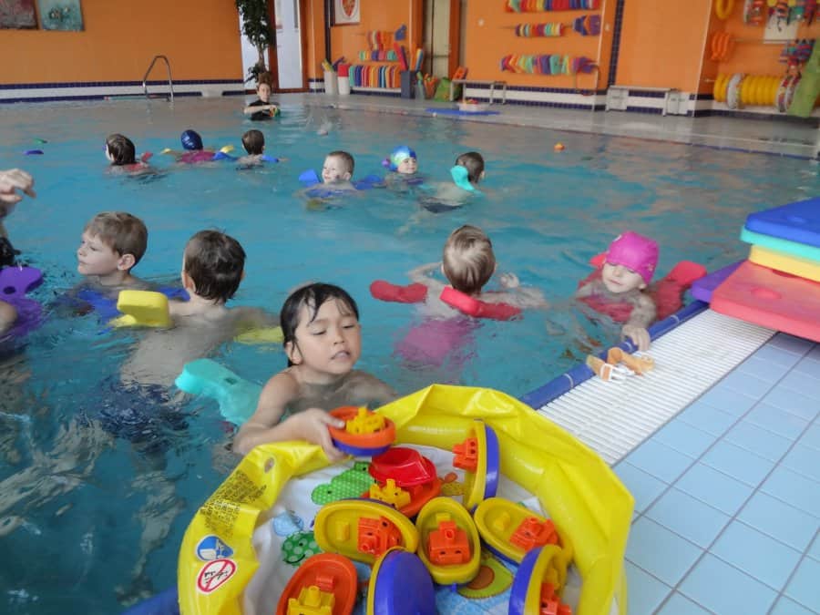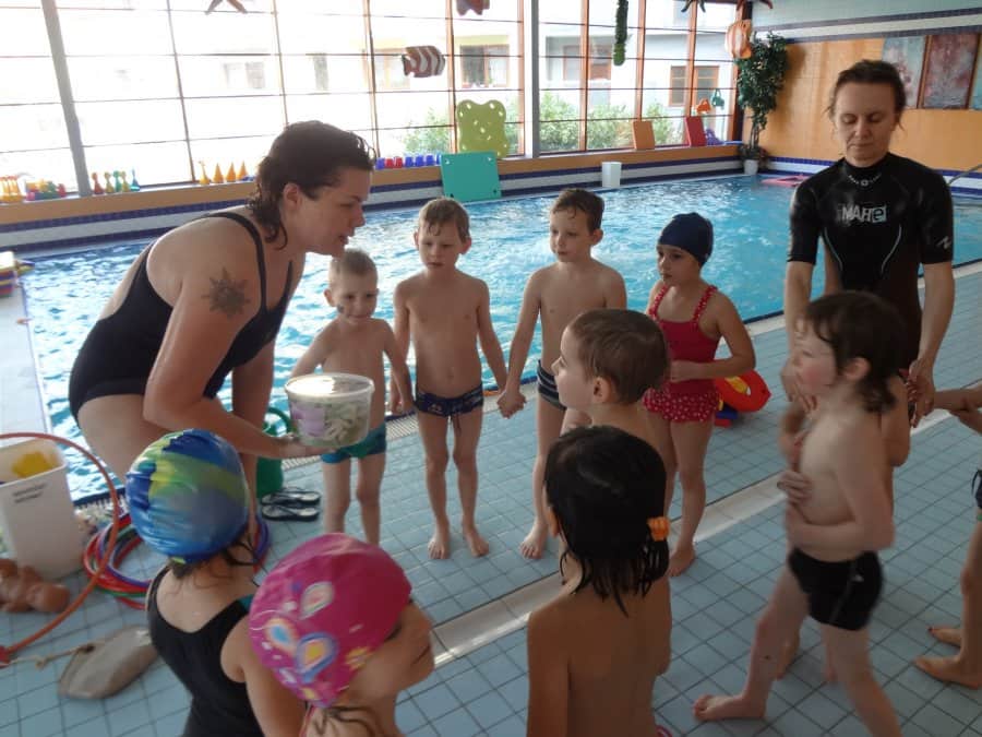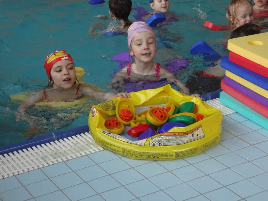 …Na závěr plaveckého cyklu si děti užily spoustu legrace v závěrečné hodině a také dostaly diplomy pro šikovné plavce…