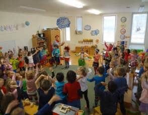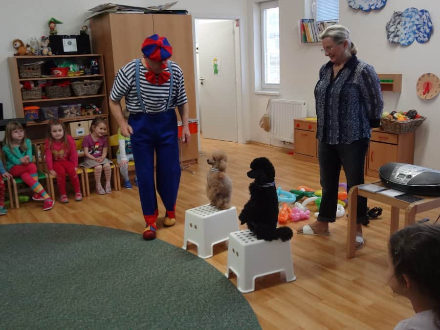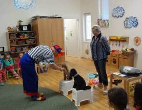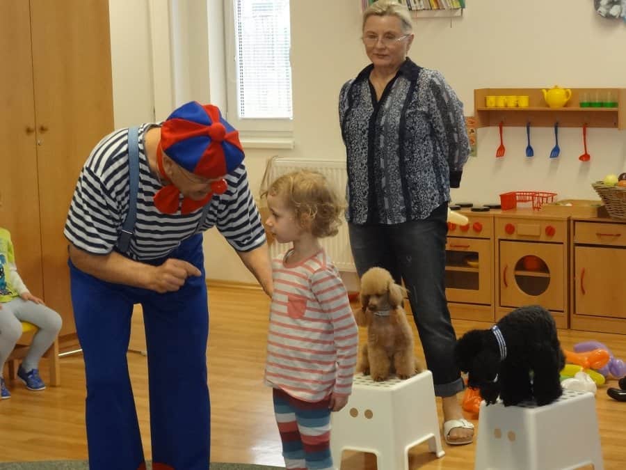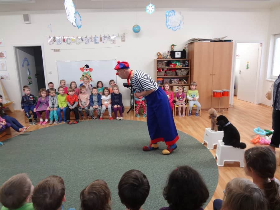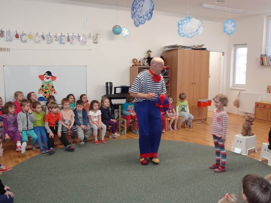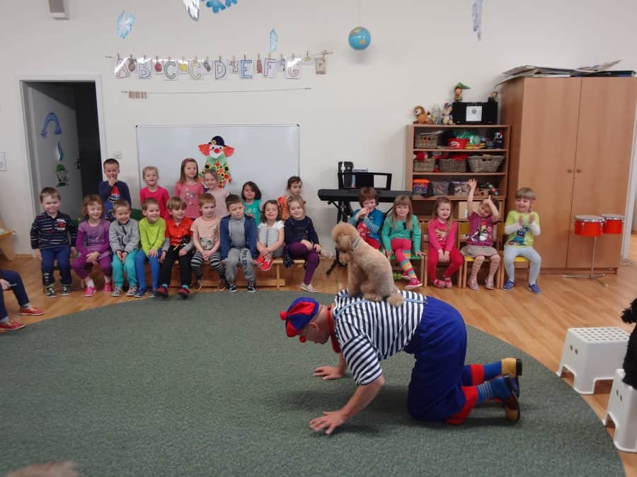 navštívil již po třetí Kostičku. Klaun je velmi dětmi oblíbený, mimo jiné i kvůli svým dvěma pejskům, kteří s Pepínem spolupracují a předvádějí různé taškařice. Děti si jeho program pořádně užily.