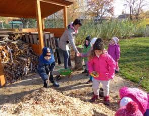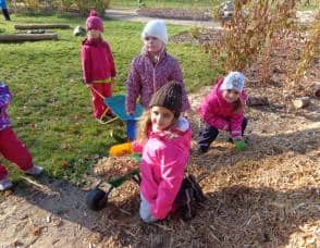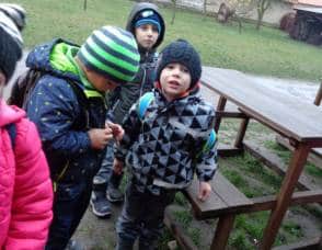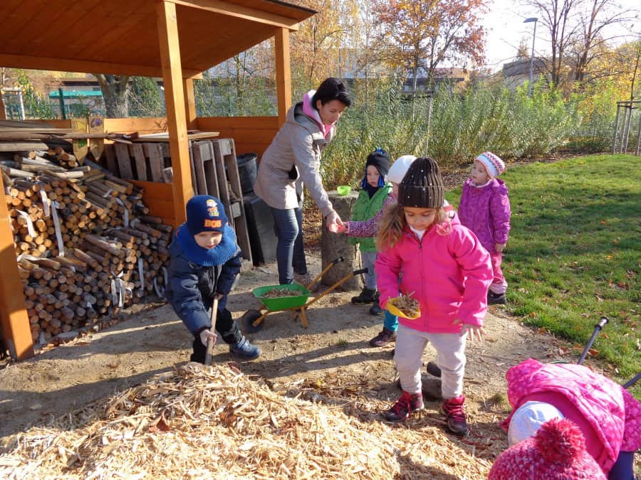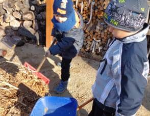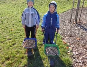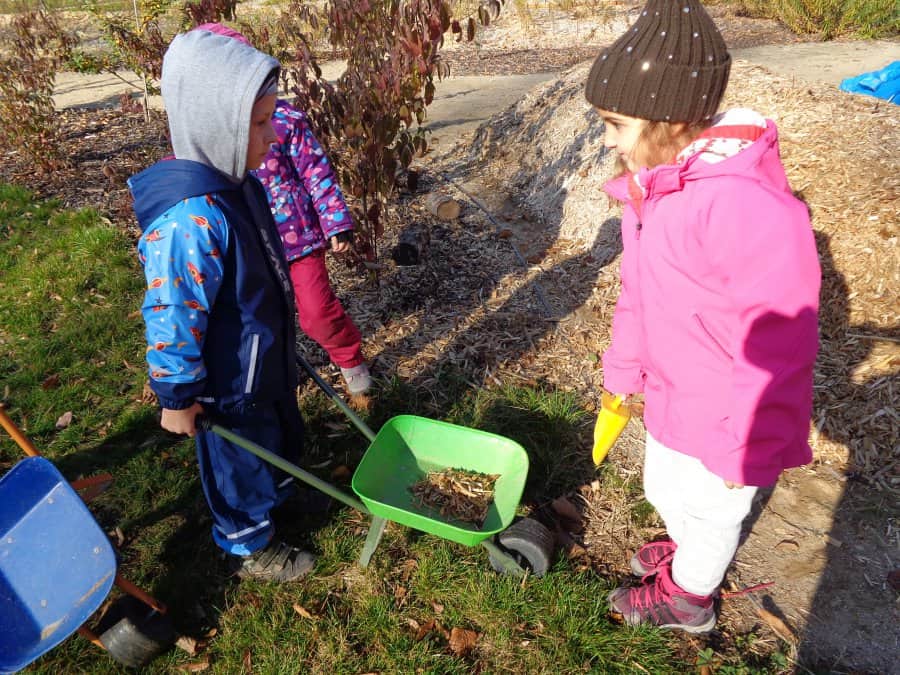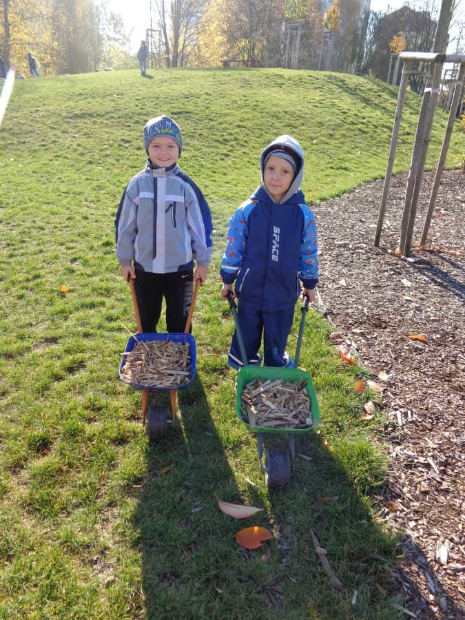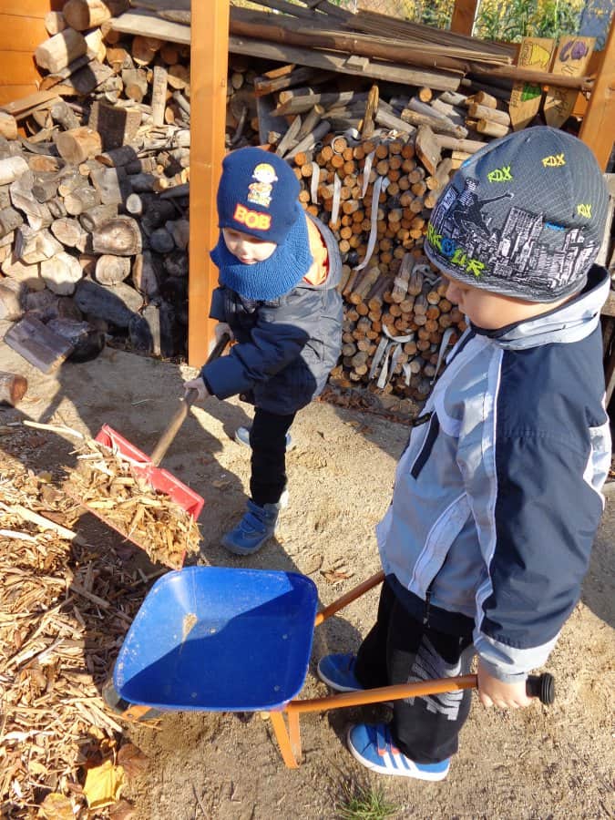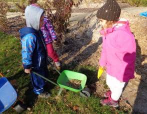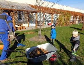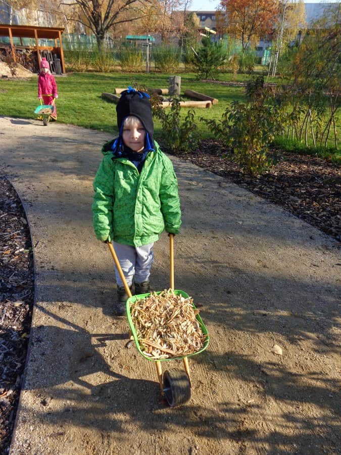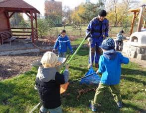 ….i děti se zapojily do úklidu zahrady a pomáhaly panu školníkovi….